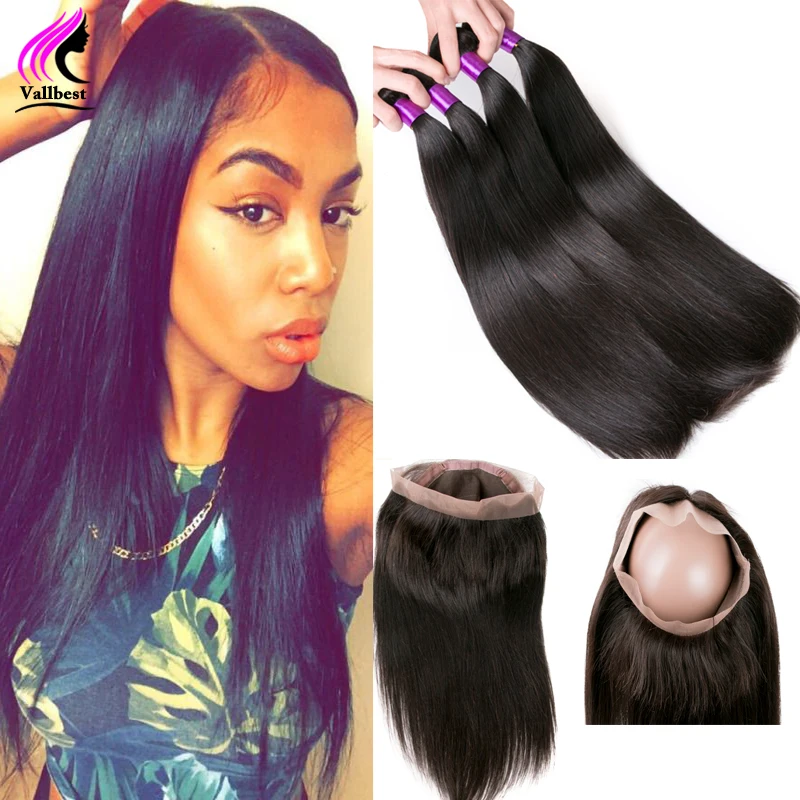 Brazilian Straight Virgin Hair With Frontal 360 Lace Frontal With Bundles 3 Bundles With Lace Frontal 360 Virgin Hair Straight